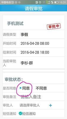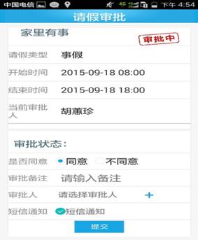 µÚÁù²½£ºµã»÷È·ÈÏ£¬ÆÚ´ýÉóÅúÖ°Ô±ÉóÅúЧ¹û¡£ÓÉÓÚÊÖ»úÉóÅúÖ»ÓжÌÐÅÌáÐÑÉóÅú¹¦Ð§£¬ÍâÇÚÖ°Ô±Çë¼Ù¿ÉÒÔ´òµç»°¼û¸æÉóÅúÈËʵʱÉóÅú