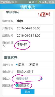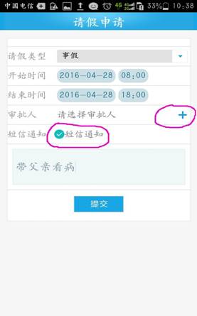 Ñ¡ÔñÉóÅúµÄʱ¼ä£¬Ò»¶¨¹´Ñ¡¡°¶ÌÐÅ֪ͨ¡±£¬¿ÉÒÔʵʱ֪ͨµ½ÉóÅúÈ˾ÙÐÐÉóÅú£¬ÇÒ¶ÌÐÅ֪ͨʱÃâ·ÑµÄ ÌîºÃÐÅÏ¢ºó£¬µã»÷¡°+¡±£¬Ñ¡ÔñÉóÅúÈ˺óÌá½»£¬·ºÆðÈçͼ2µÄ½çÃæ